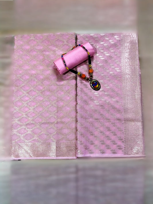 Esra's Handloom/Handwoven Banarasi Semi-Tissue Saree.